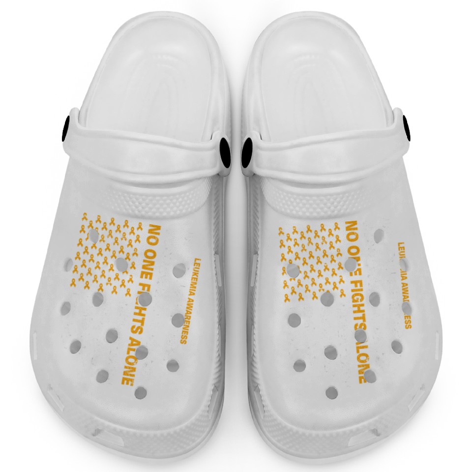 Shop for impressive No One Fights Alone Usa Flag Leukemia Awareness Clogs or see more Clogs products right now on Printblur to enjoy your happiness!