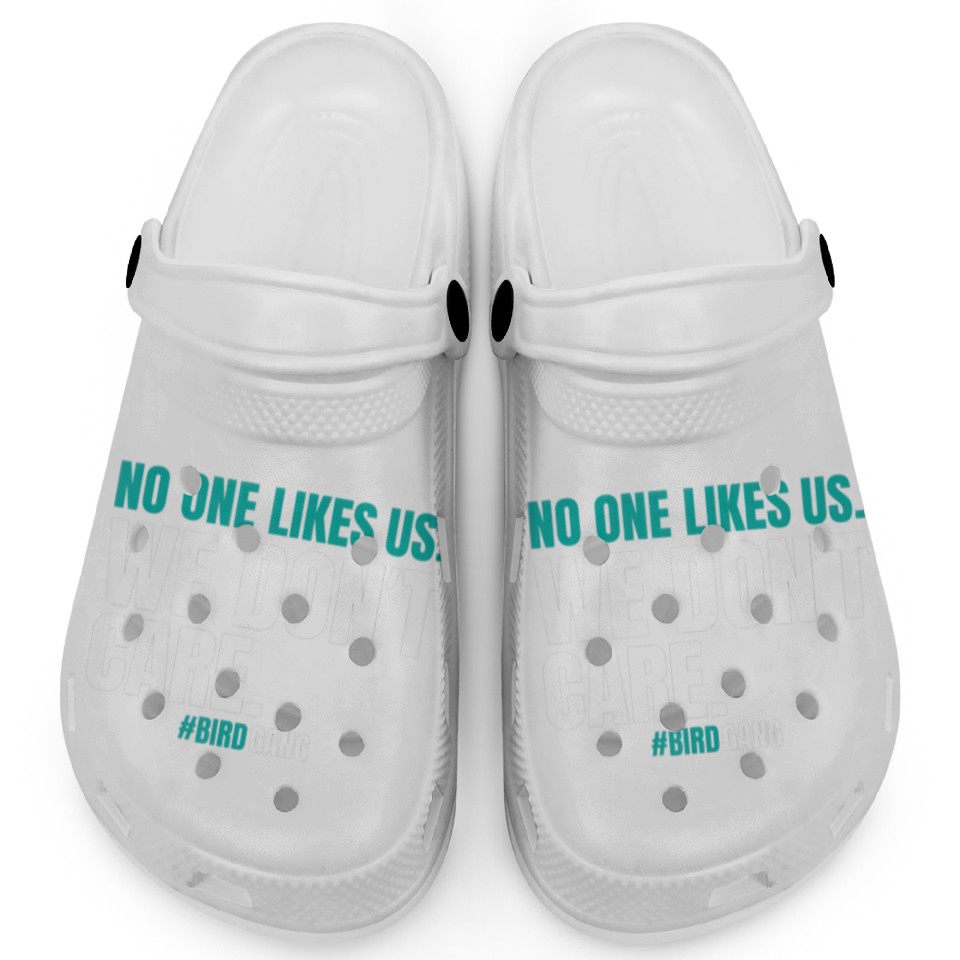 No One Likes Us We Dont Care Funny Philly Bird Clogs