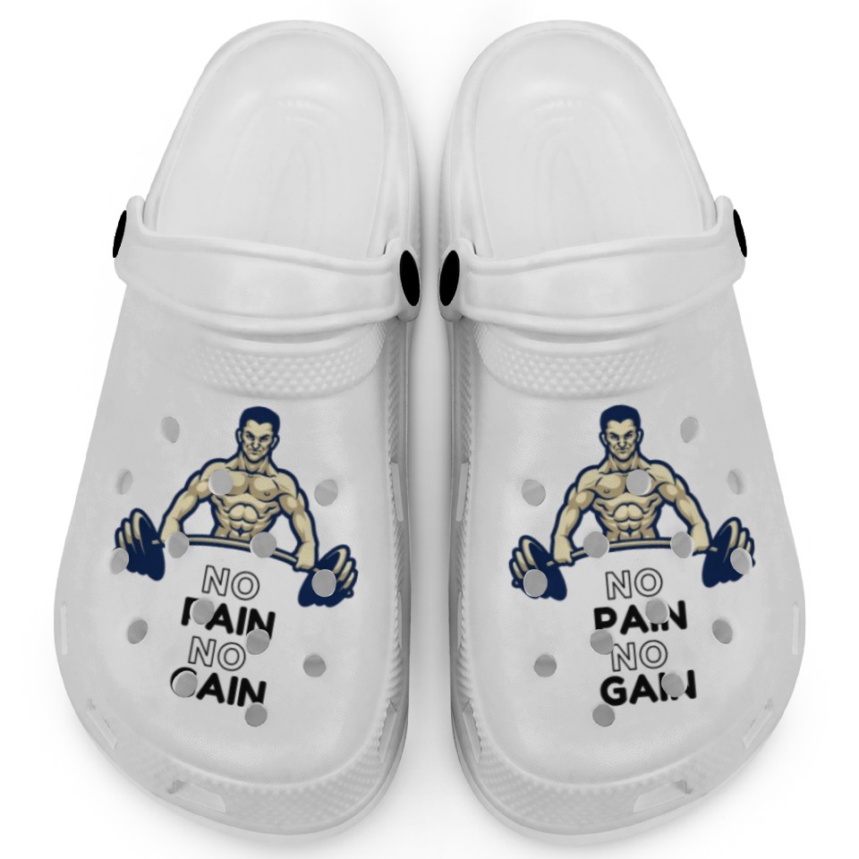 NO PAIN NO GAIN Clogs ALL ABOUT HARD WORK