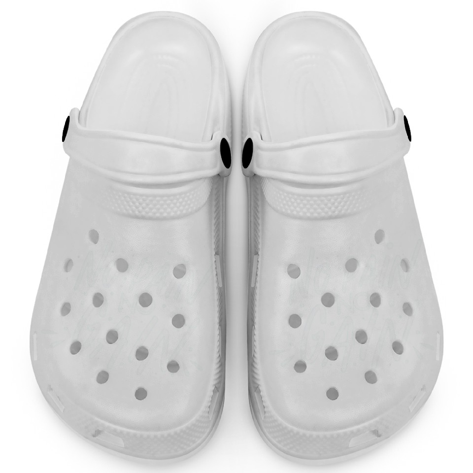 The item hot trend you're looking at is No Pain No Gain Clogs For Kids WHITE belong theme Clogs at Printblur