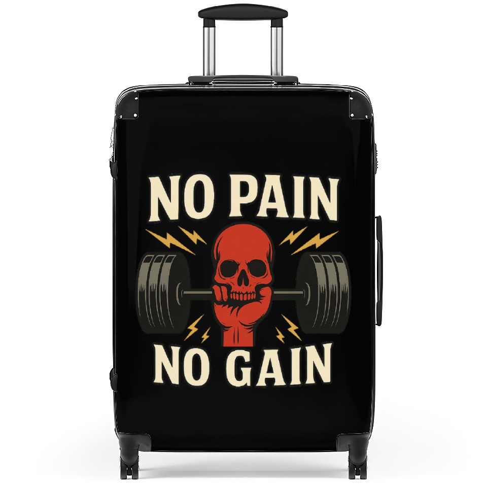 Buy eye-catching No Pain No Gain Skull Barbell Motivation Gym Suitcases or see more Suitcases products at Printblur shop now to explore many surprises from our shop!