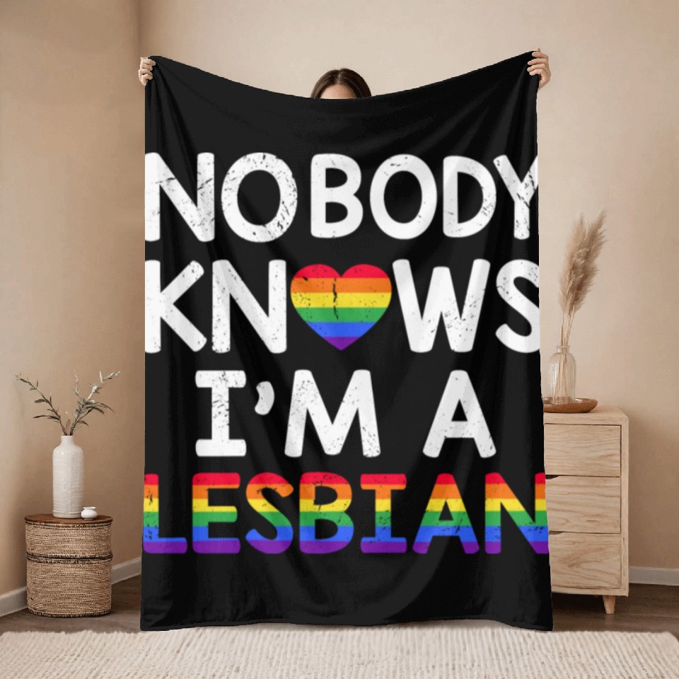 Shop for impressive Nobody Knows I'm A Lesbian LGBTQ Rainbow Pride Throw Blankets or see more Throw Blankets products right now on Printblur to enjoy your happiness!