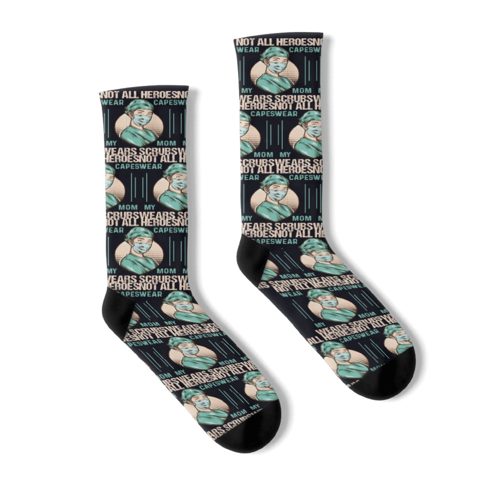 Buy stunning Not All Heroes Wear Capes My Mom Wears Scrub Socks or see more Socks products at Printblur right now to receive many amazing discounts!