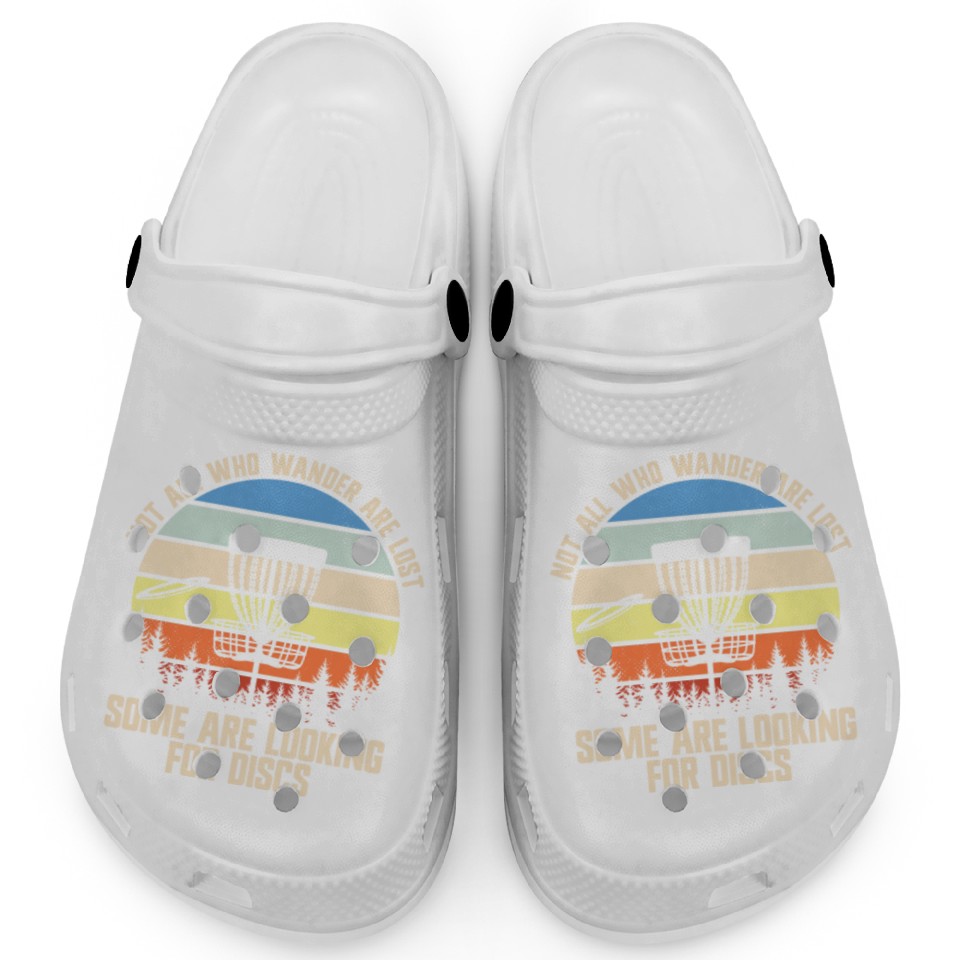 The product unique design you searched for is Not All Who Wander Are Lost Looking For Discsfunny Clogs For Kids WHITE belong theme Clogs at Printblur