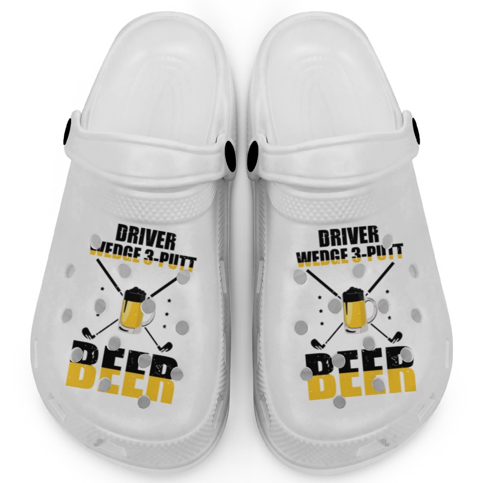 You're taking a peek at the product Novelty Golfing Golfer Comical Field Sports Clogs For Kids WHITE belong theme Clogs at Printblur