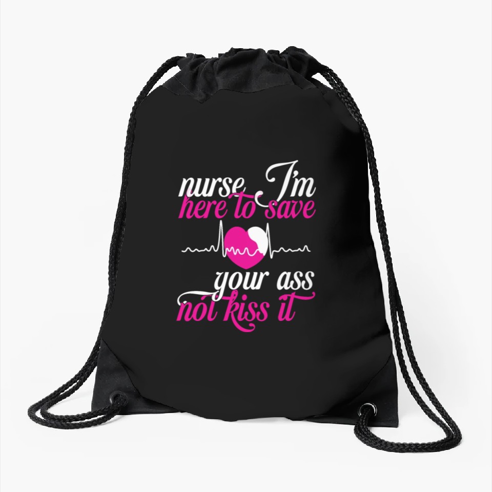 Shop for attractive Nurse J m Here To Save Gour Ass Not Kiss It Drawstring Bags or see more Drawstring Bags products on https://printblur.com right now!