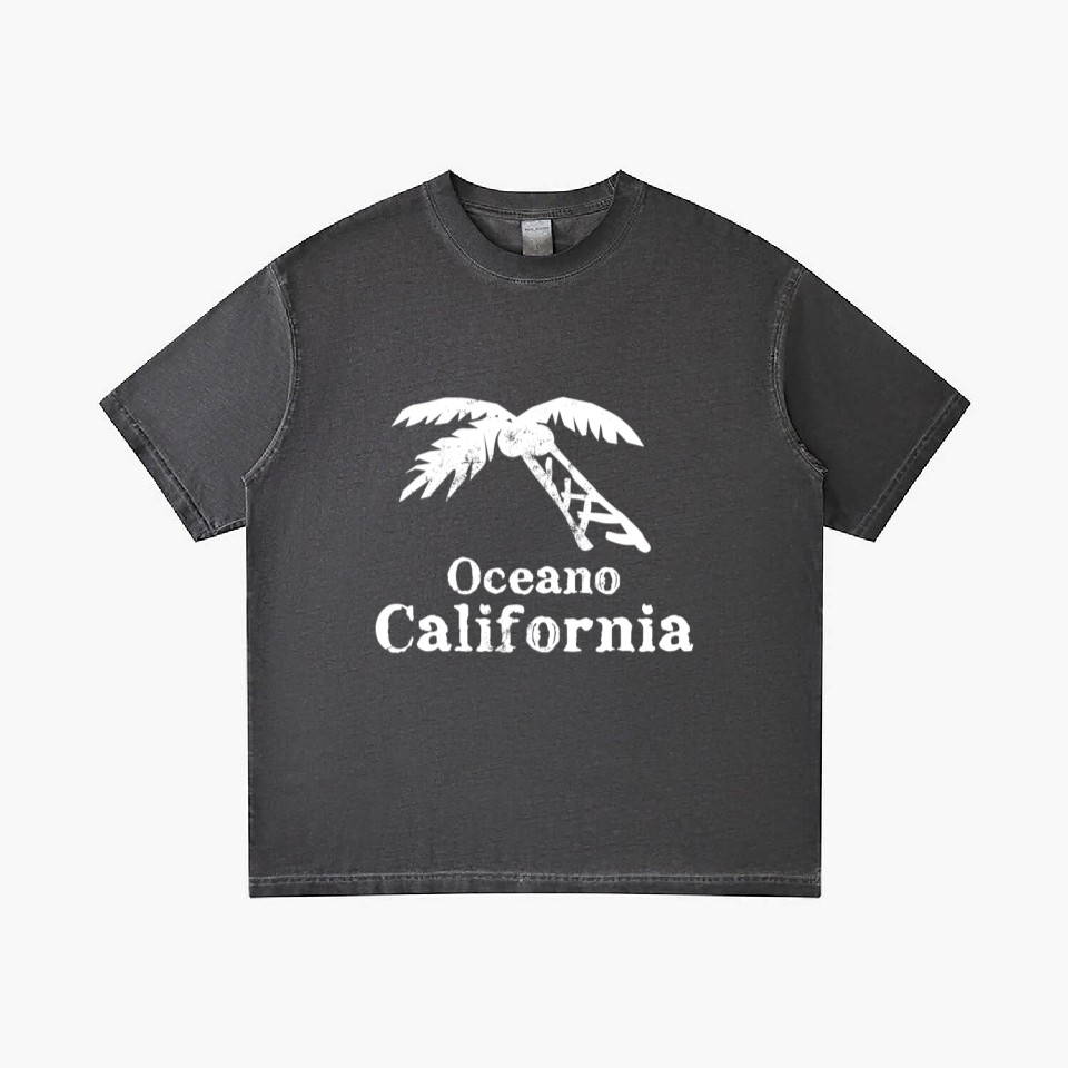 You are shopping for a stunning and trendy product Oceano California Palm Tree Souvenirs Gifts Gradient T Shirts For Men Washed Black belong theme Gradient T-Shirts at Printblur