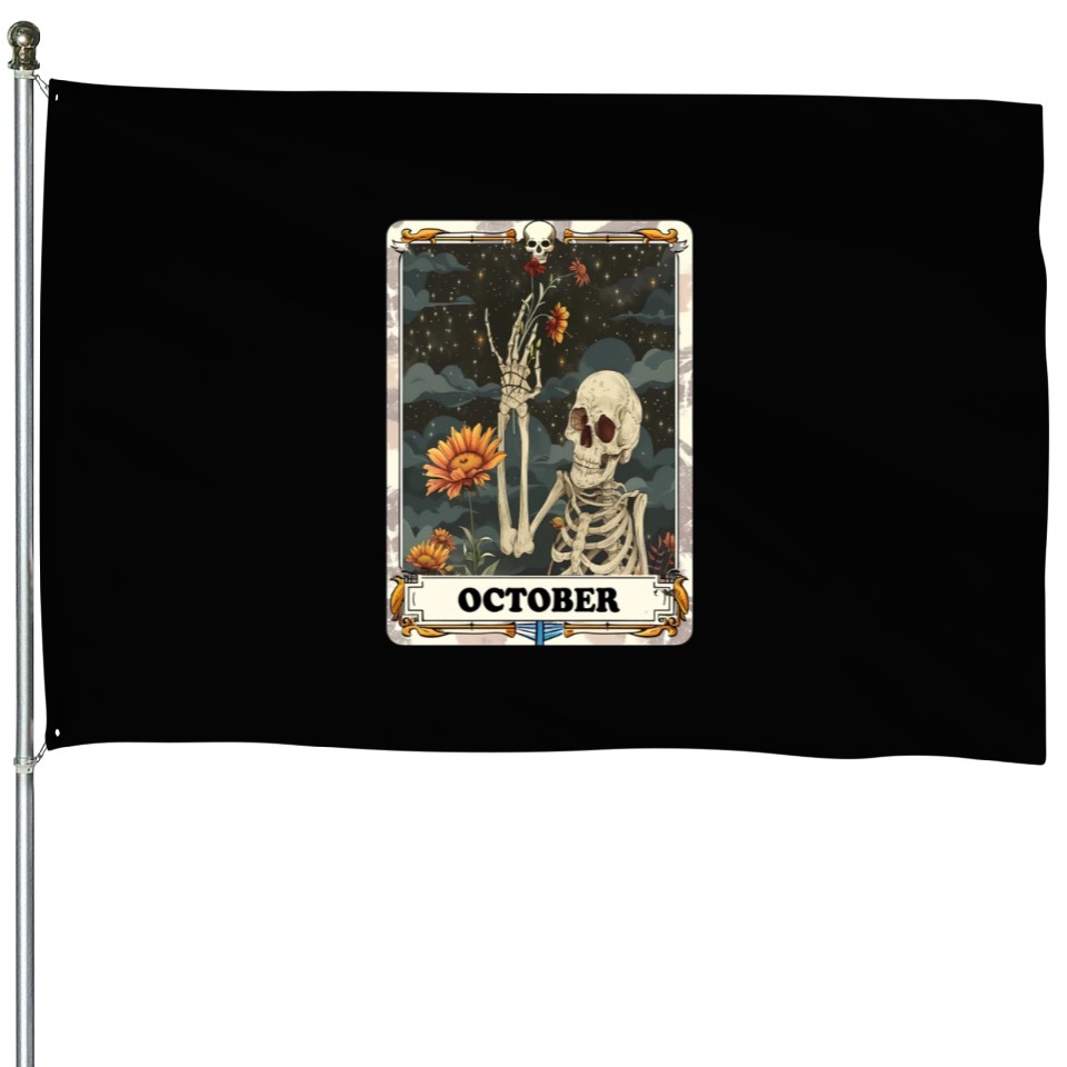 Own fascinating October Gothic Tarot Card - Marigold Flower & Skel House Flags or see more House Flags products now from Printblur shop to enjoy your shopping time!