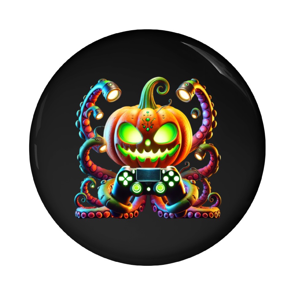 Octopus Pumpkin Gamer with Glowing Halloween Vibes Pin Buttons