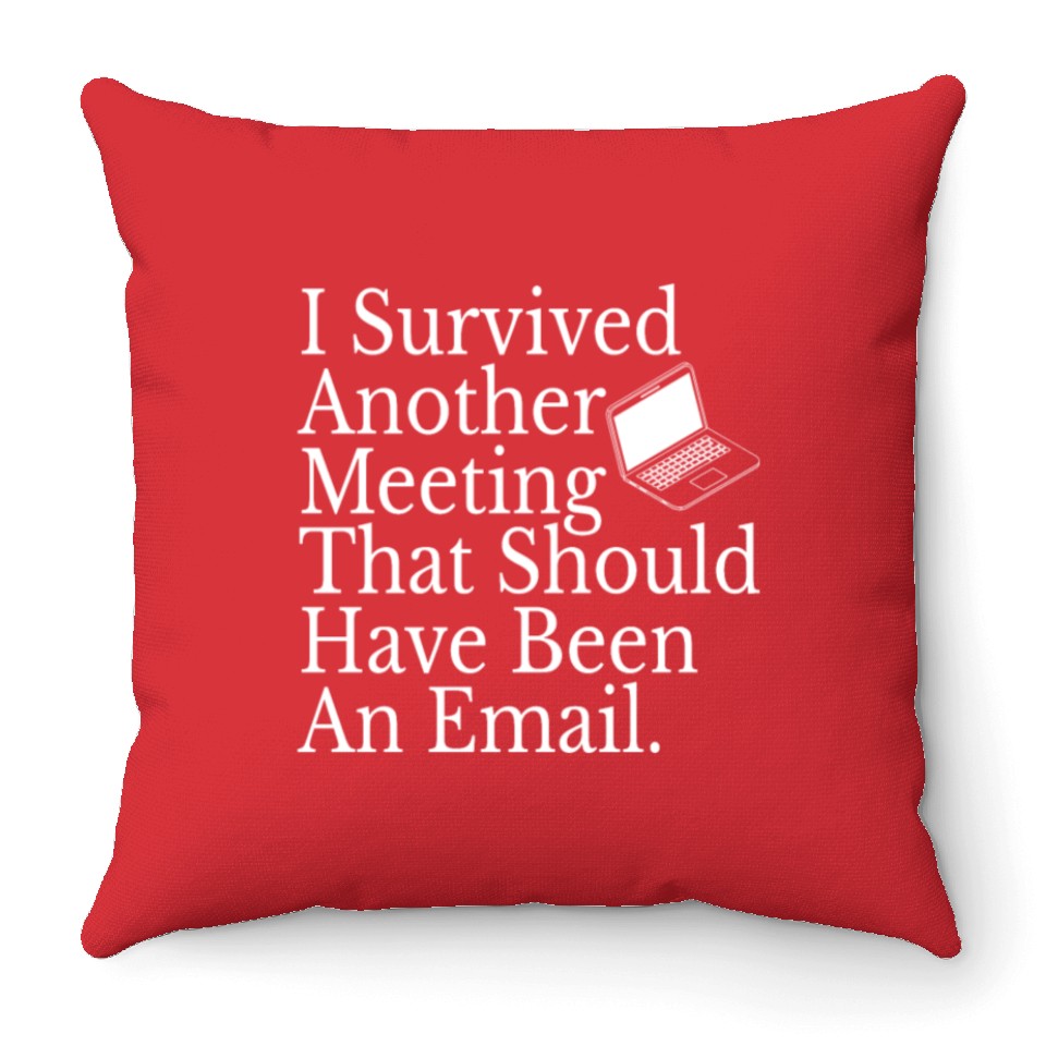 You are viewing an exclusive and elegant product Office Employee Funny I Survived Another Meeting Throw Pillows For Cover Only Red belong theme Throw Pillows at Printblur