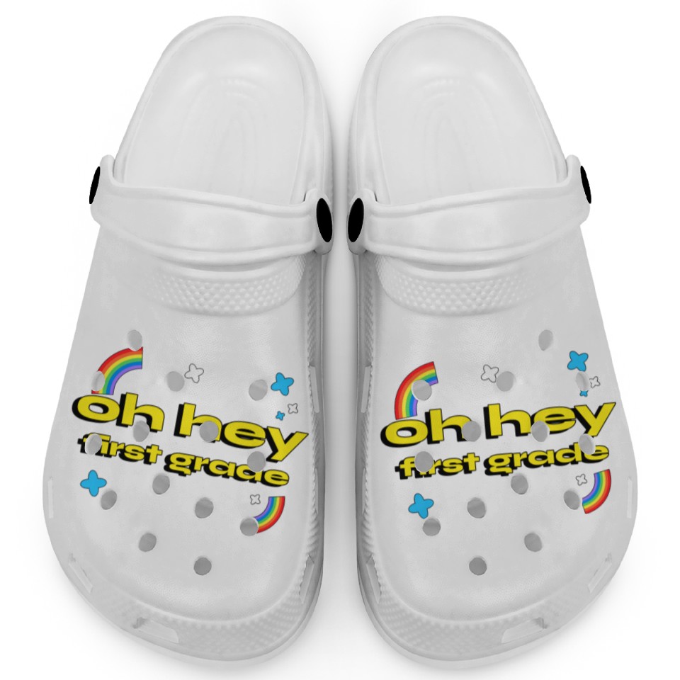 Buy eye-catching oh hey first grade Teacher Student cute Clogs or see more Clogs products at Printblur shop now to explore many surprises from our shop!