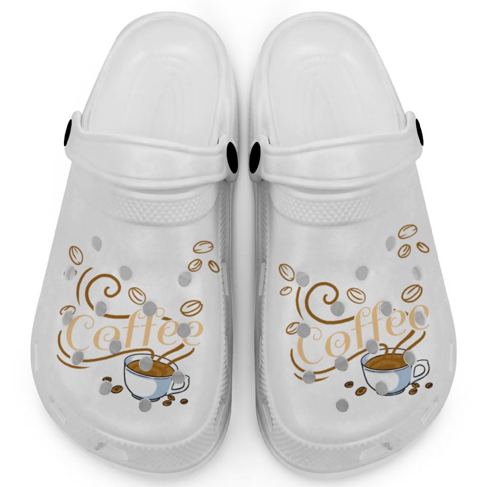 You're looking at the eye-catching product Ok But First Coffee For Coffee Lover Clogs For Kids WHITE belong theme Clogs at Printblur