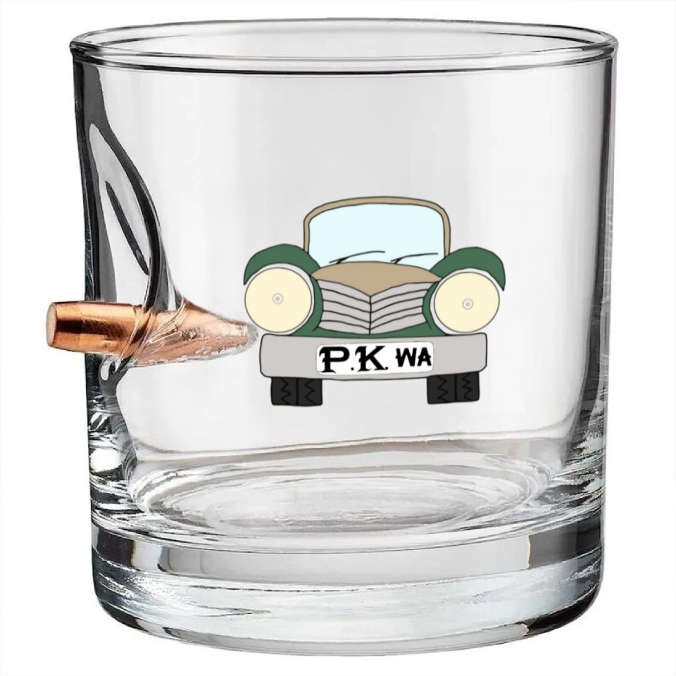 Old Car Khaki Afrikaans PK wa Bullet Whiskey Glasses