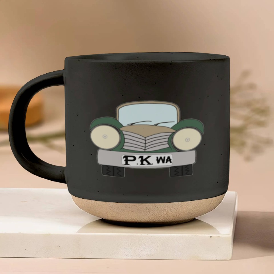 You are viewing an exclusive and elegant product Old Car Khaki Afrikaans PK wa Pottery Mugs For Black belong theme Pottery Mugs at Printblur