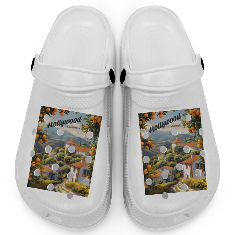 Buy eye-catching Old Hollywood California: Orange Groves Await Clogs or see more Clogs products at Printblur shop now to explore many surprises from our shop!