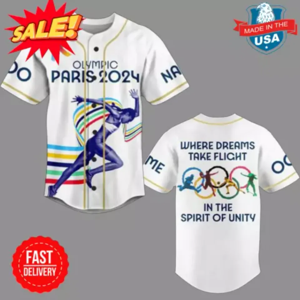 Buy stunning Olympic Paris 2024 Where Dreams Take Flight Personalized Baseball Jersey or see more Baseball Jerseys products at Printblur right now to receive many amazing discounts!