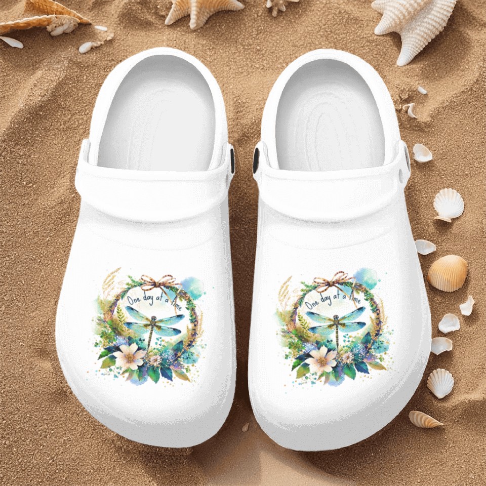 You are seeing a unique and impressive product One day at a time dragonfly floral Nurse Clogs For Men WHITE belong theme Nurse Clogs at Printblur