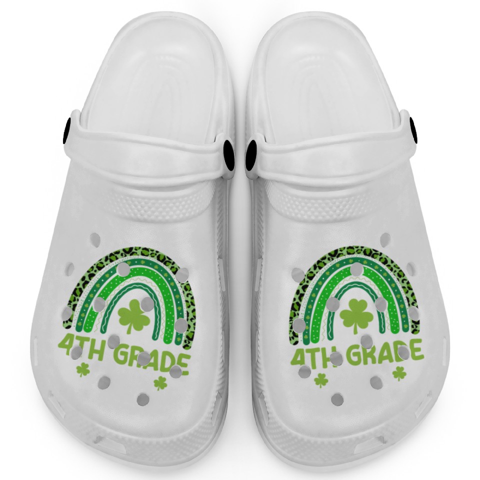 The product unique design you searched for is One Lucky 4th Grade Teacher St Patrick's day Clogs For Kids WHITE belong theme Clogs at Printblur