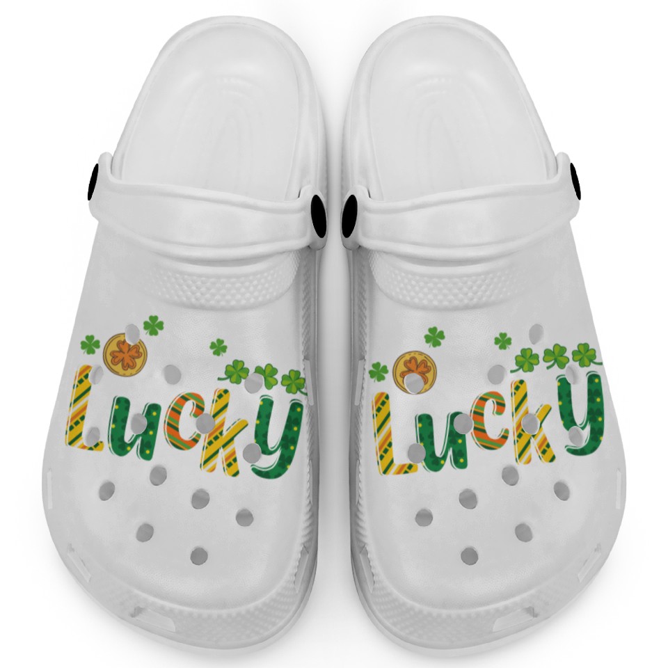You are seeing a unique and impressive product One Lucky Principal School St Patrick's Day Clogs For Kids WHITE belong theme Clogs at Printblur