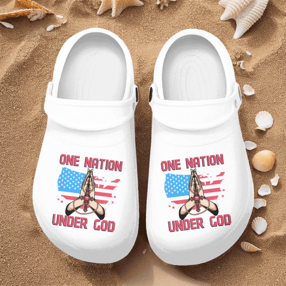 You are shopping for a stunning and trendy product One Nation under God Nurse Clogs For Men WHITE belong theme Nurse Clogs at Printblur