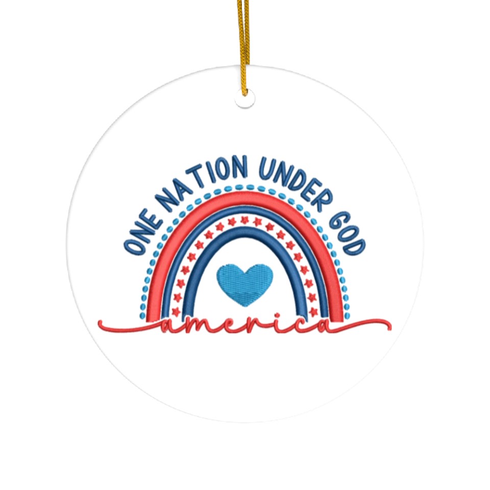 You are seeing a unique and impressive product One Nation Under God Rainbow Embroidery Effect Ceramic Ornaments For WHITE belong theme Ceramic Ornaments at Printblur