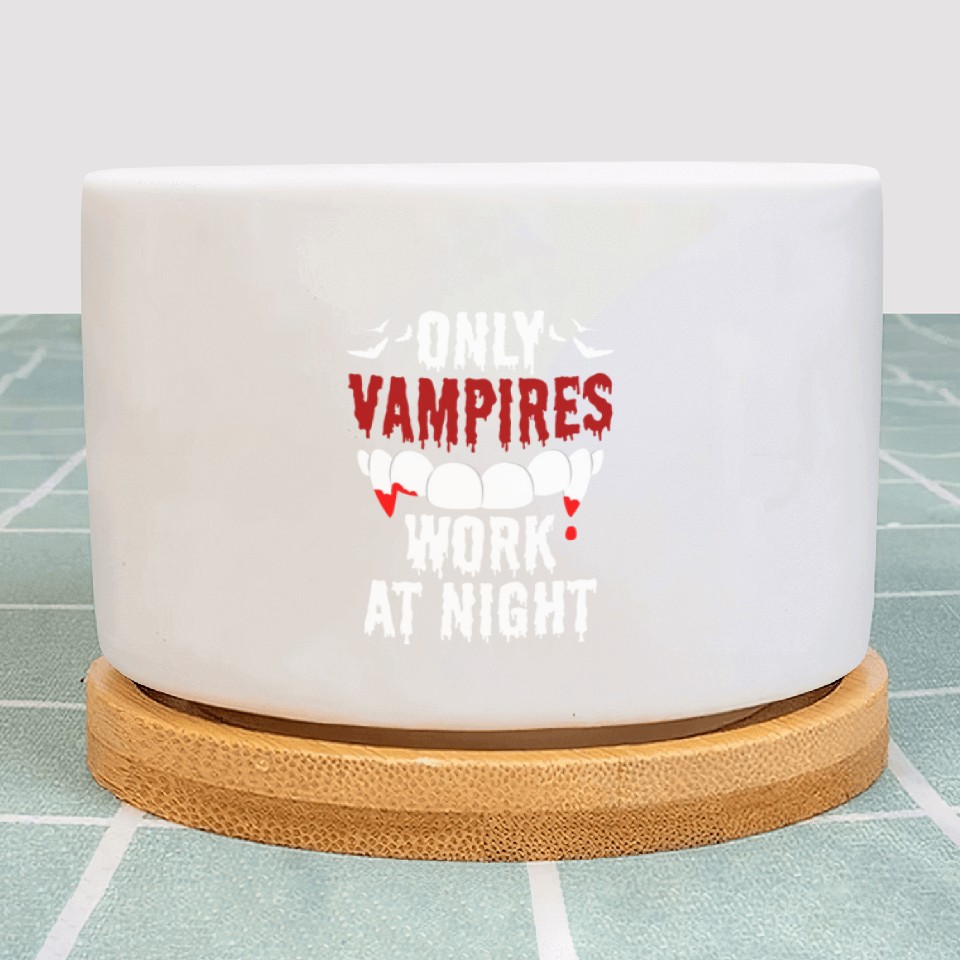 You're looking at the eye-catching product Only Vampires Work At Night Worker Job Day Shift Plant Pots For WHITE belong theme Plant Pots at Printblur