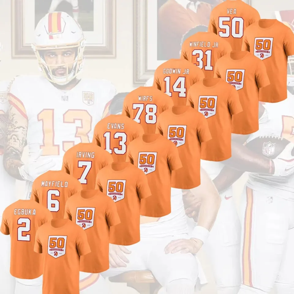 Shop for impressive Orange's Tampa Bay Buccaneers 50th Season Name & Number Gift For Fans or see more Double Sided T-Shirts products right now on Printblur to enjoy your happiness!