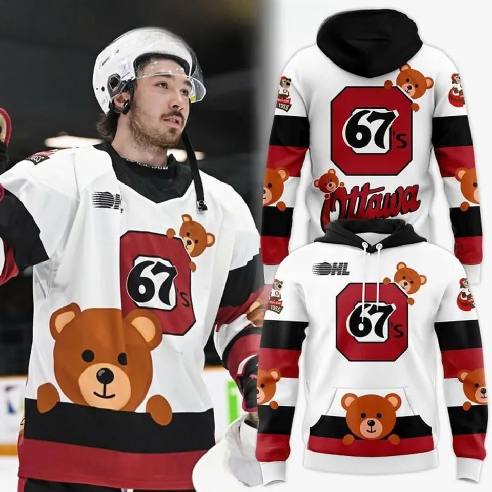 The item hot trend you're looking at is Ottawa 67’s Teddy Bear Toss 2025 Hoodie Shirt For Kids belong theme 3D Hoodies at Printblur