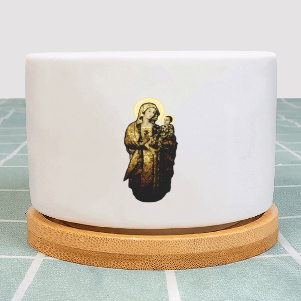 You are seeing a unique and impressive product Our Virgin Mother (and Son) Plant Pots For WHITE belong theme Plant Pots at Printblur