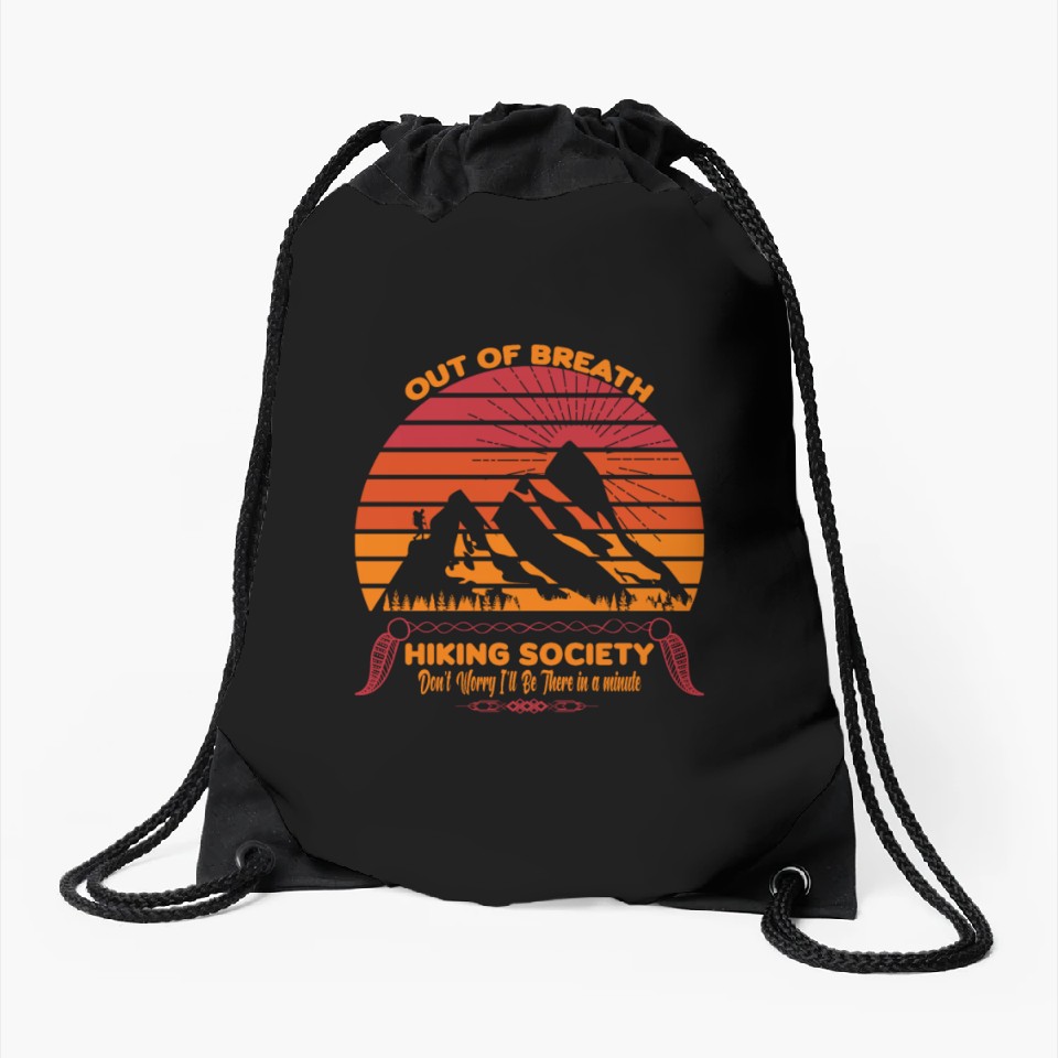 Buy eye-catching Out of Breath Hiking Society Drawstring Bags or see more Drawstring Bags products at Printblur shop now to explore many surprises from our shop!