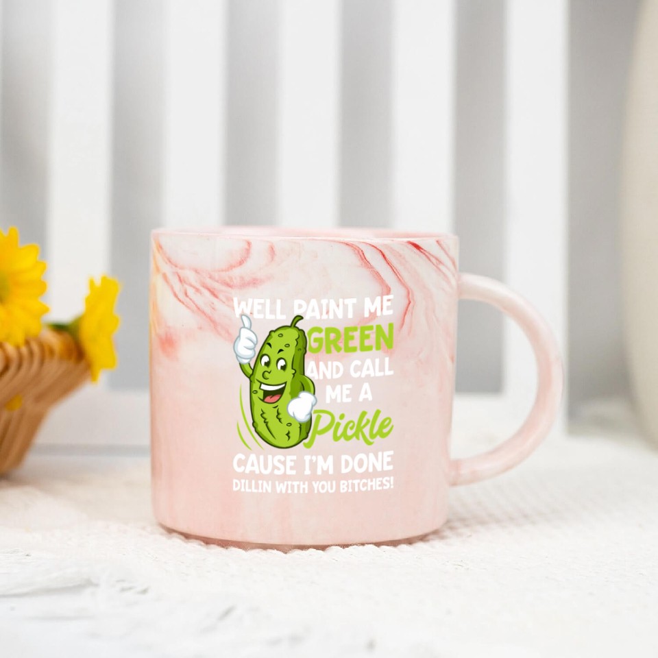 You are shopping for a stunning and trendy product Paint Me Green And Call Me A Pickle Bitches Marble Mugs For Pink belong theme Marble Mugs at Printblur