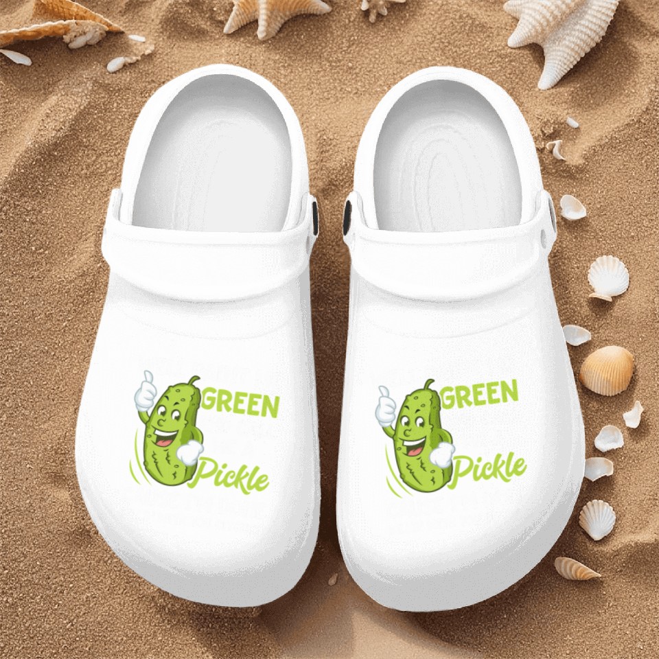 The product unique design you searched for is Paint Me Green And Call Me A Pickle Bitches Nurse Clogs For Men WHITE belong theme Nurse Clogs at Printblur