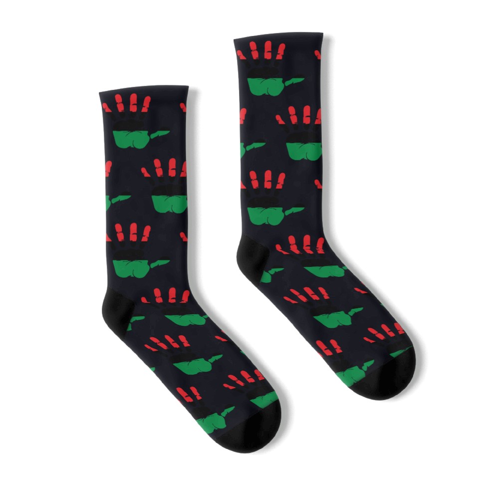 Buy eye-catching Pan African Flag Hand Print Sign Afro- American Socks or see more Socks products at Printblur shop now to explore many surprises from our shop!