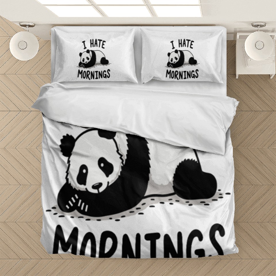 The product unique design you searched for is Panda I Hate Mornings Saying Bedding Sets For WHITE belong theme Bedding Sets at Printblur