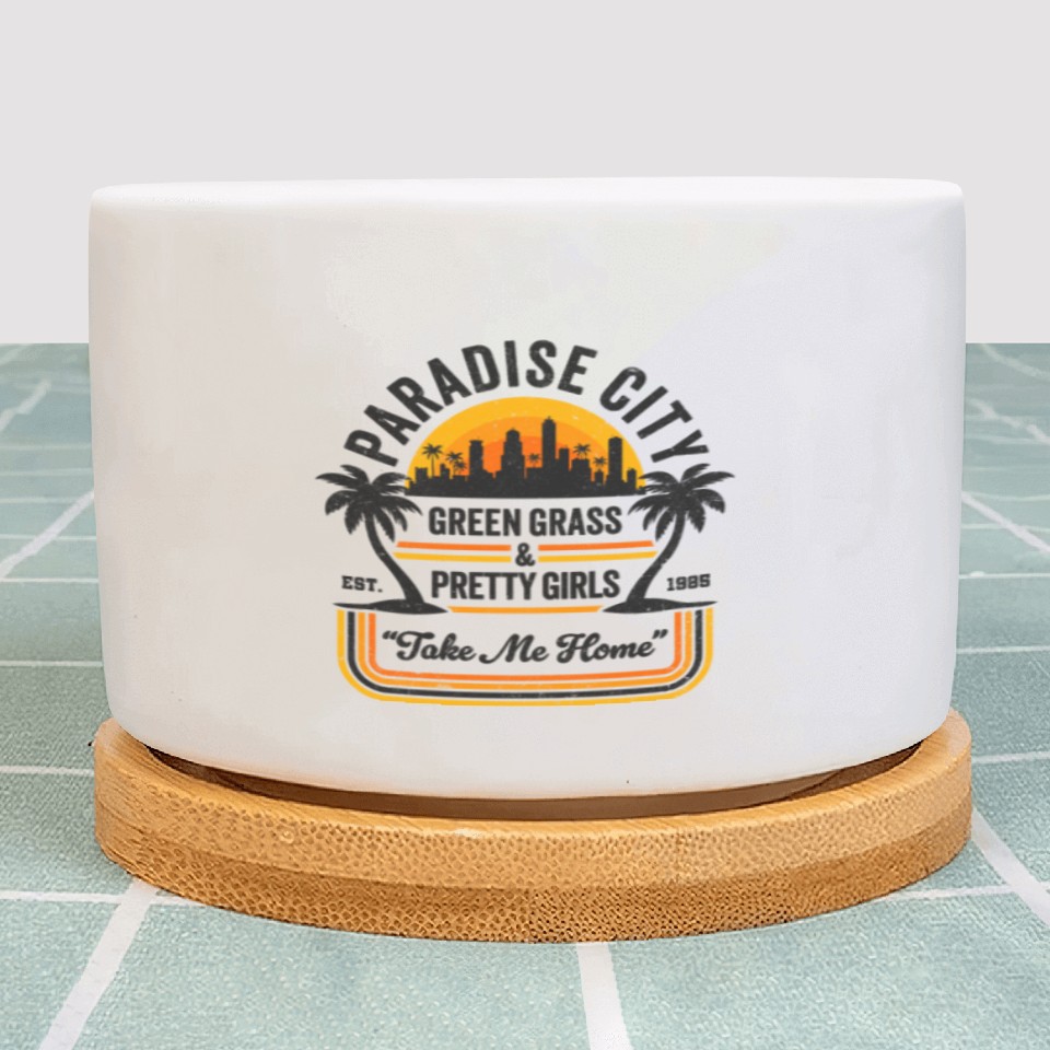 Buy stunning Paradise City: Funny 80's Rock Vibes Plant Pots or see more Plant Pots products at Printblur right now to receive many amazing discounts!