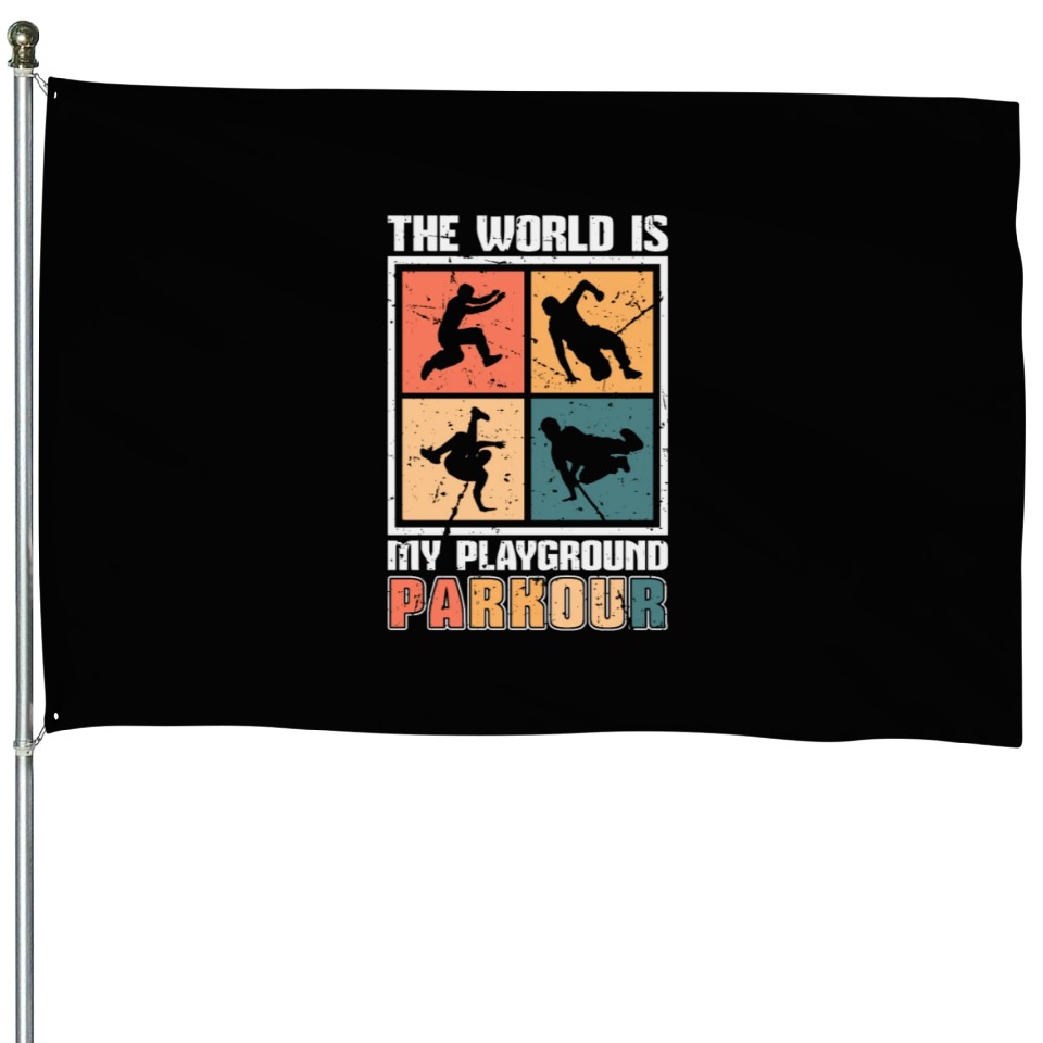 Buy stunning Parkour The World Is My Playground Retro Running House Flags or see more House Flags products at Printblur right now to receive many amazing discounts!