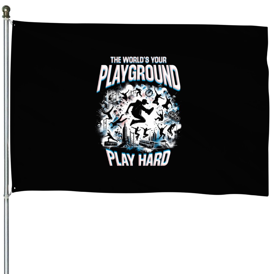 Shop for impressive Parkour The World's Your Playground Play Hard House Flags or see more House Flags products right now on Printblur to enjoy your happiness!