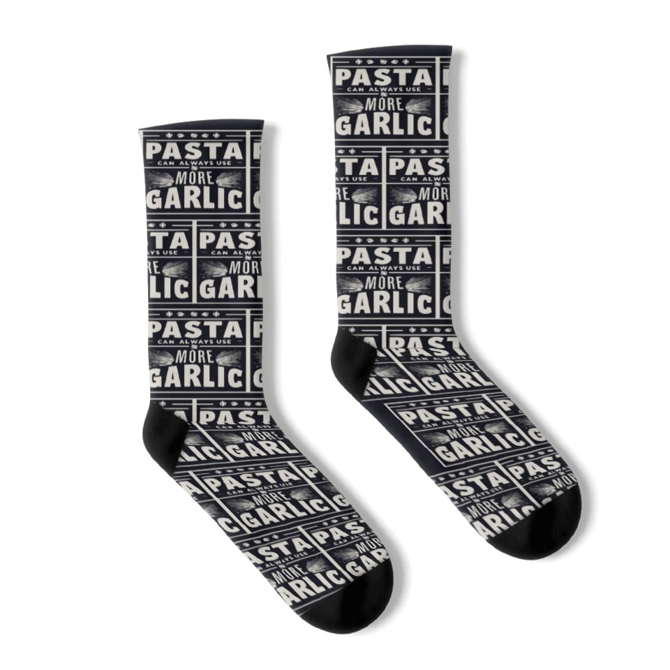 Buy eye-catching Pasta can always use more garlic Socks or see more Socks products at Printblur shop now to explore many surprises from our shop!