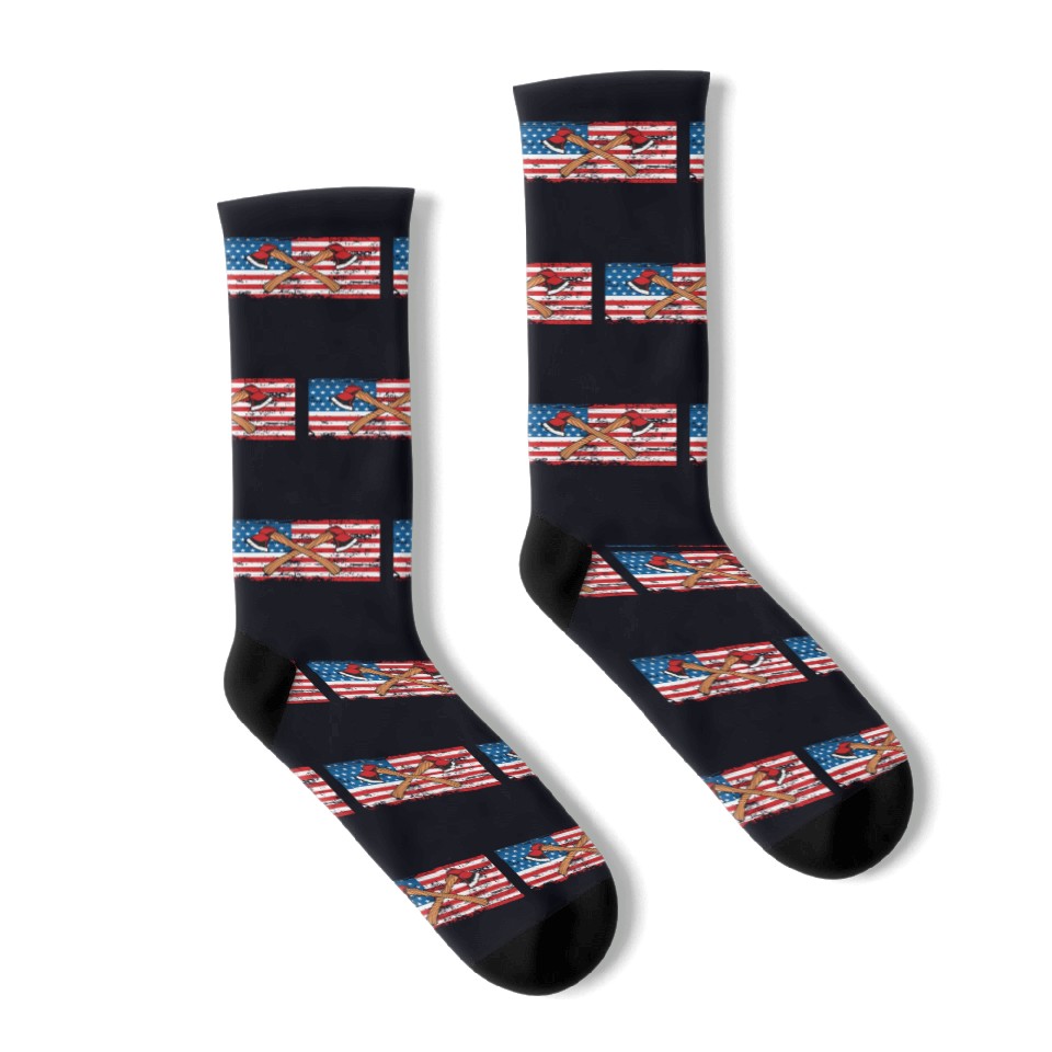 You are viewing an exclusive and elegant product Patriotic American Flag For Axe Thrower Socks For Black belong theme Socks at Printblur