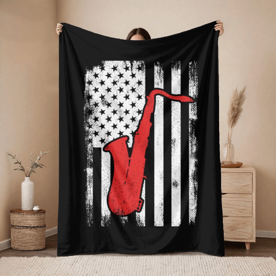 You are seeing a unique and impressive product Patriotic US Saxophone Player Throw Blankets For Black belong theme Throw Blankets at Printblur