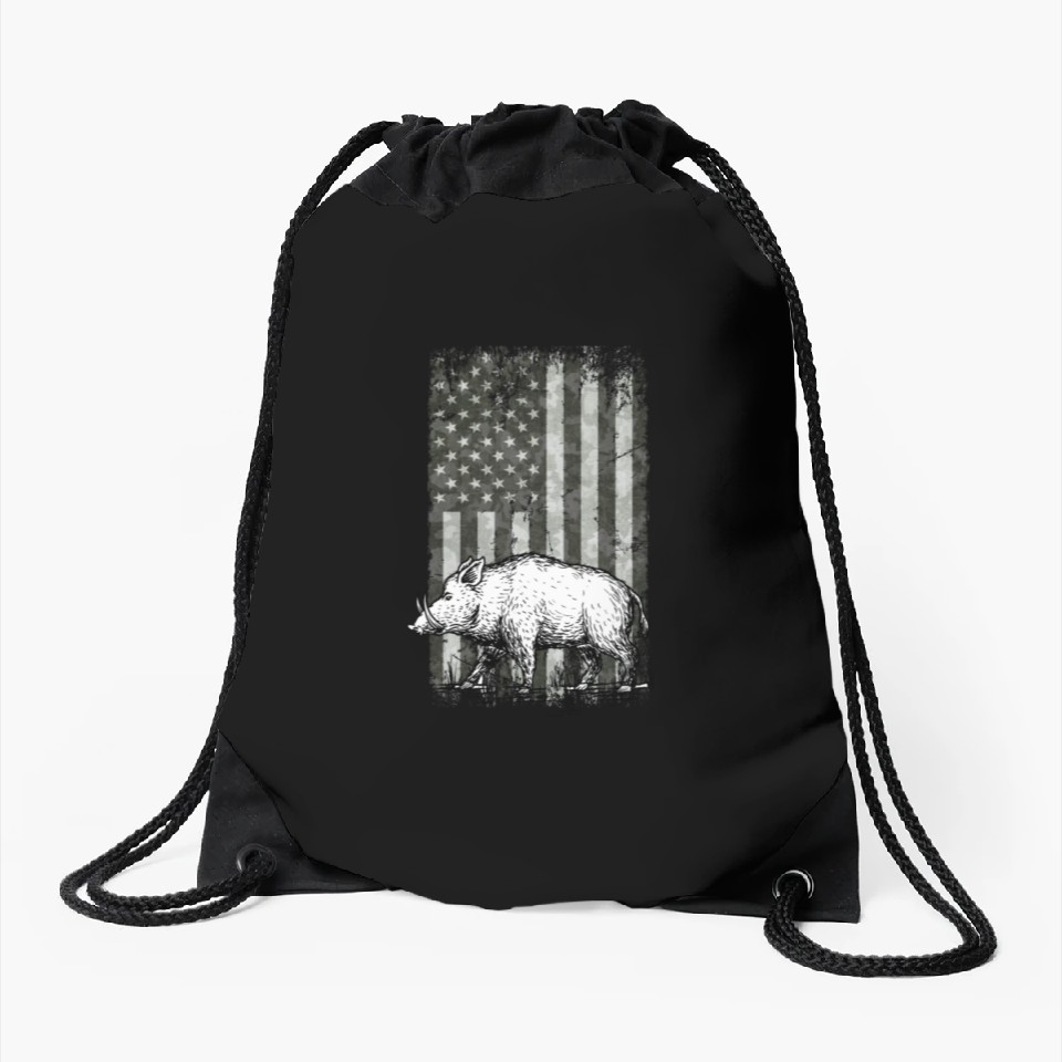 Buy eye-catching Patriotic Wild Boar Hunting Season For Hog Drawstring Bags or see more Drawstring Bags products at Printblur shop now to explore many surprises from our shop!