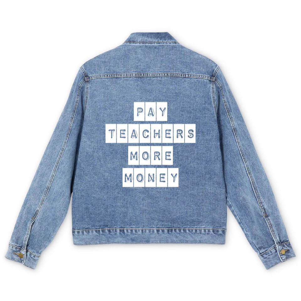 Shop for attractive Pay Teachers More Money Teacher Activist Political Men's Denim Jackets or see more Men's Denim Jackets products on https://printblur.com right now!