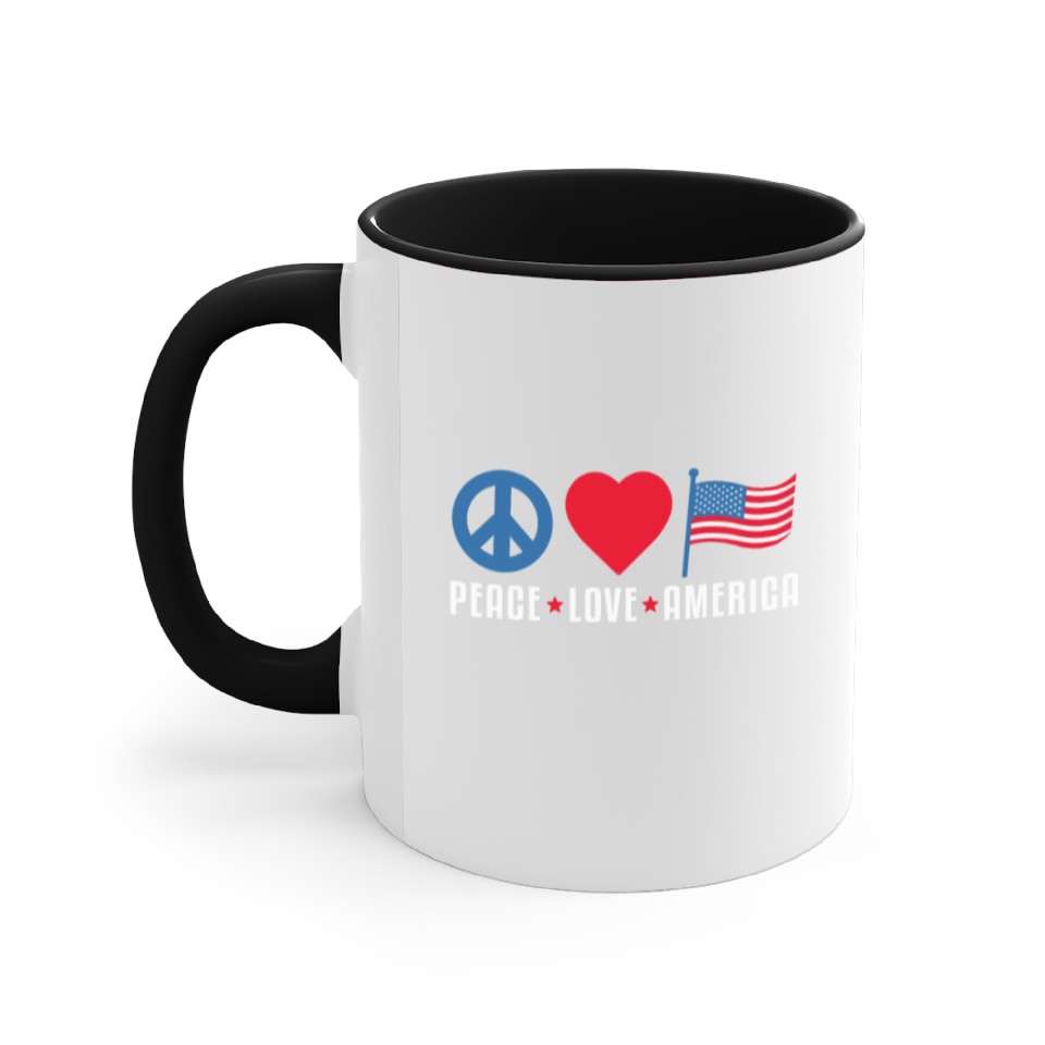 You're taking a peek at the product Peace Love America US Flag Independence Accent Mugs For Black belong theme Accent Mugs at Printblur