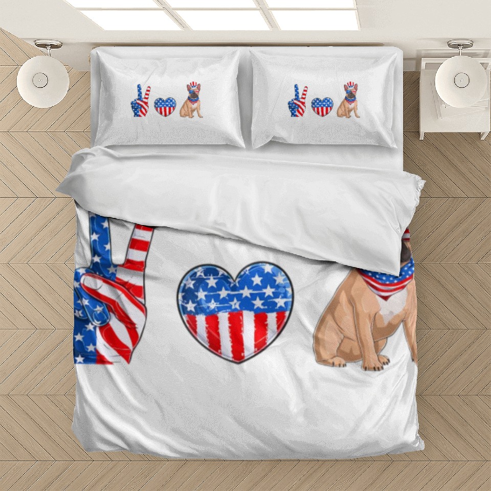 The product unique design you searched for is Peace Love Frenchie Patriotic US Flag 4th July Bedding Sets For WHITE belong theme Bedding Sets at Printblur