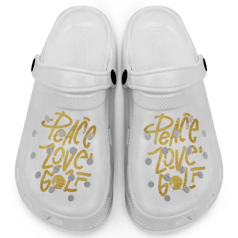 Shop for attractive Peace Love Golf Clogs or see more Clogs products on https://printblur.com right now!