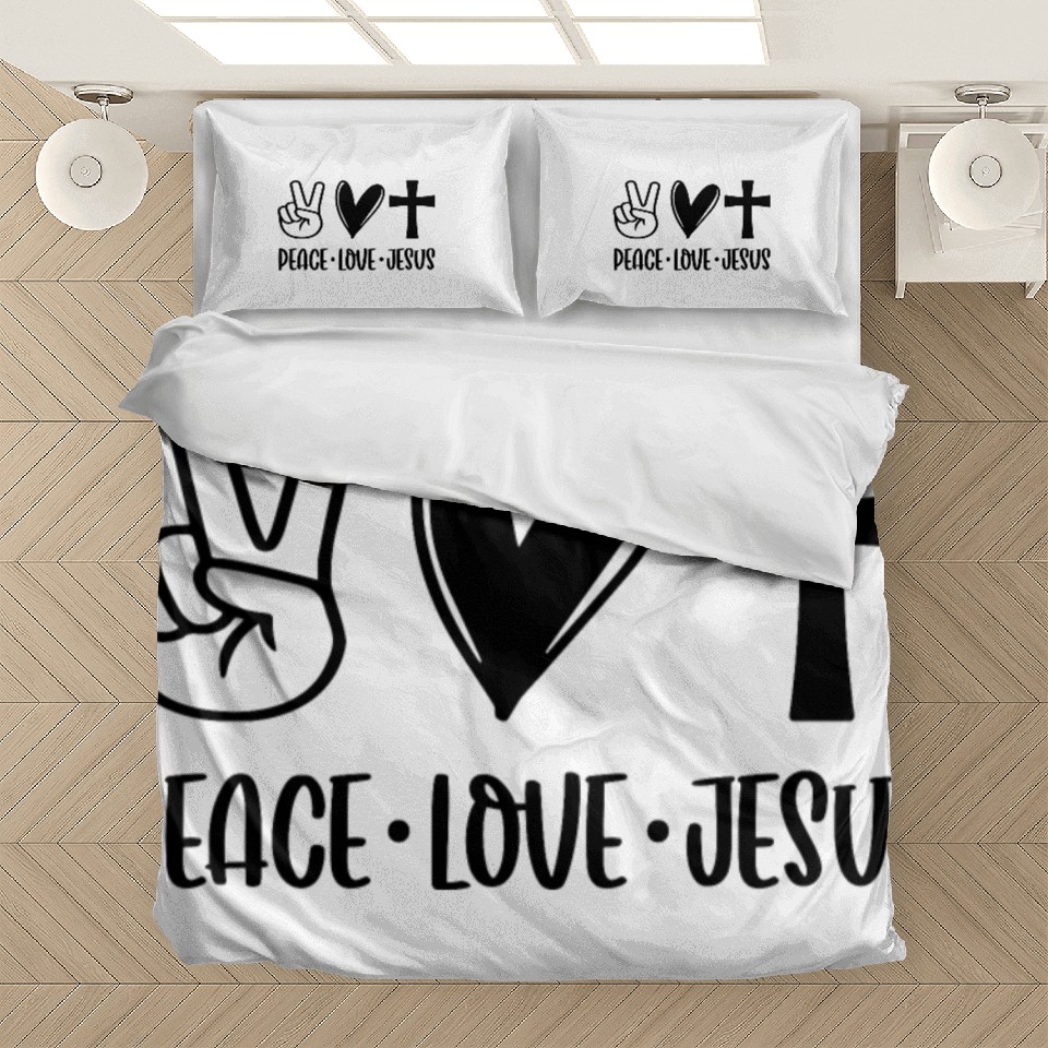 Own fascinating Peace Love Jesus Bedding Sets or see more Bedding Sets products now from Printblur shop to enjoy your shopping time!