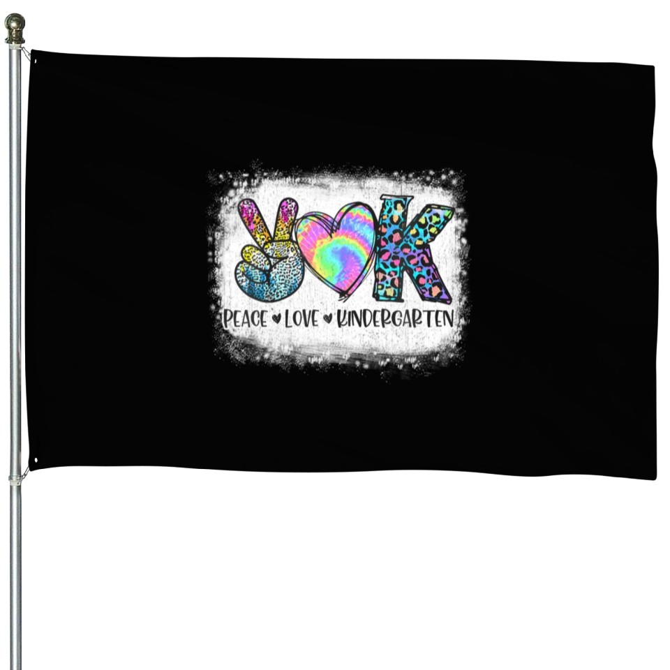 Shop for attractive Peace Love Kindergarten Teacher Appreciation Retro House Flags or see more House Flags products on https://printblur.com right now!