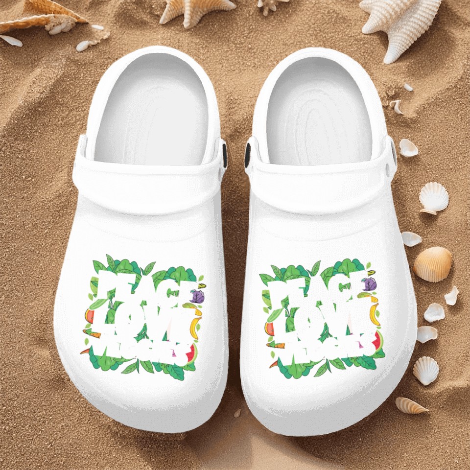 You are viewing one of the trendiest products Peace, Love, Veggies Nurse Clogs For Men WHITE belong theme Nurse Clogs at Printblur