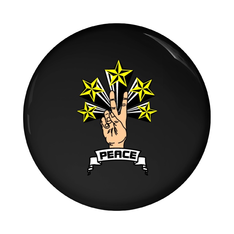 Buy stunning Peace sign hand with V 5 yellow stars Pin Buttons or see more Pin Buttons products at Printblur right now to receive many amazing discounts!
