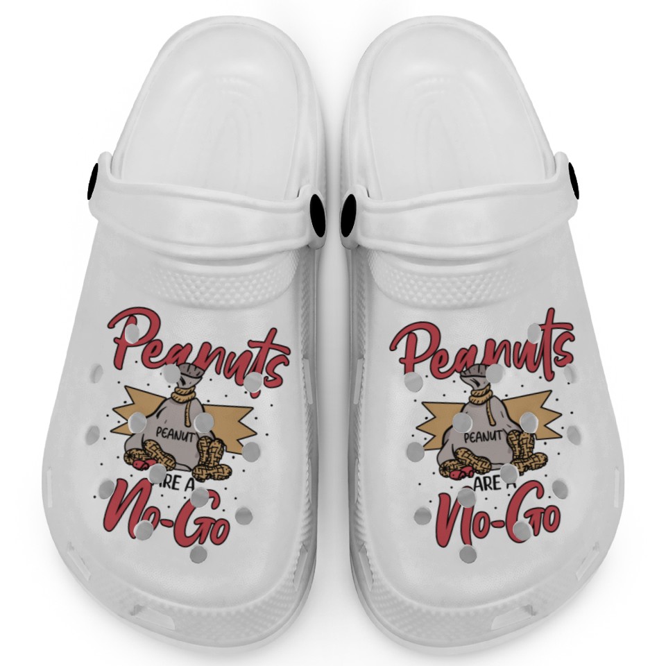 The item hot trend you're looking at is Peanuts Are A No-Go Peanut Allergic Clogs For Kids WHITE belong theme Clogs at Printblur